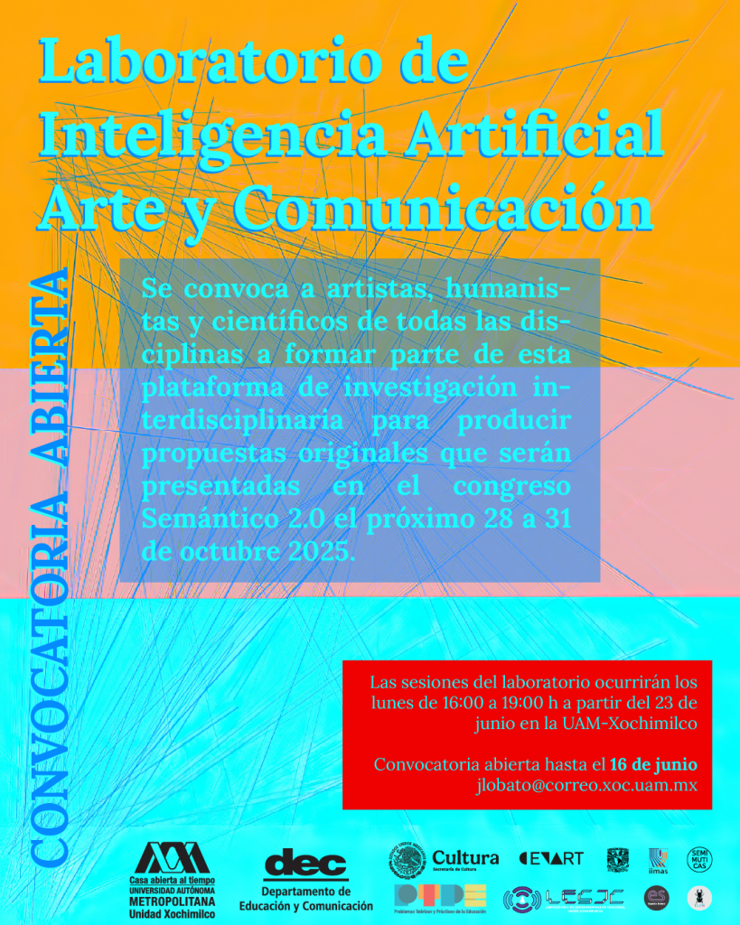 El Seminario de Inteligencia Artificial, Arte y Comunicación del Departamento de Educación y Comunicación (UAM-X) y el Seminario de Investigación en Música, Matemáticas y Cómputo del Instituto de Investigaciones en Matemáticas Aplicadas y en Sistemas (IIMAS-UNAM) convocan: